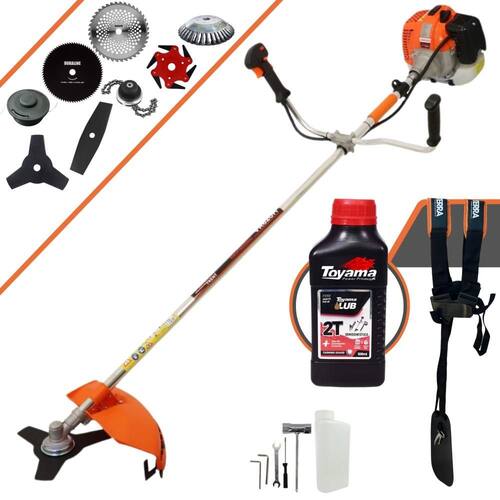 Roçadeira Lateral Vulcan VR620H À Gasolina 2 Tempos 62cc 3HP + Faca 2 Pontas 330mm + Faca 40 Dentes 255mm + Faca 80 Dentes 255mm + Faca 6 Pontas 250mm + Trimmer + Escova Rotativa 200mm 38 Cerdas + Óleo Toyama FG50 500ml