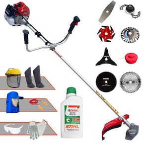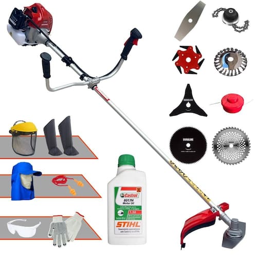 Podador Kawashima BCJ620L 62cc Com Carretel + Facas 2 Pontas, 3 Pontas, 6 Pontas, 40 Dentes, 80 Dentes, Trimmer e Escova de Aço + EPI + ÓLEO STIHL 2T