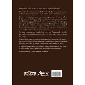 Estes poemas, foram escritos ao longo da vida. Alguns mais recentes. Esta história de escrever, começou desde muito cedo. Eu, ainda era uma menina sonhadora. Que amava escrever e ler, eu lia tudo que encontrava no caminho. O tempo passou, muitas poesias e mensagens se perderam, pois não era dado o devido valor a escrita. Eu sempre fui romântica, sonhava com um mundo cor de rosa. Lia muito romance, histórias de autores renomados, e, as vezes queria ter meu próprio final da história. Escrevi romances, jogral, histórias em quadrinhos; mas tudo isso se perdeu, até o dia que mostrei alguns rascunhos, para um “amigo.” Fiquei surpresa com a reação positiva dele, qual começou a me incentivar a escrever e publicar, pois gostou muito do que leu. Foi aí que começou, uma linda história entre nós. Uma amizade colorida, que rendeu muitas páginas destas poesias, e se quiser saber como, ou quem, leia o livro. Está em algum lugar, inclusive o nome da pessoa responsável pelo apoio e incentivo pela primeira edição desta obra. O tempo passou, seguimos caminhos diferentes, mas a ideia de publicar esses poemas, foram adiados até agora. Se passaram mais de vinte anos, para que pudesse ser realizado o meu sonho, de publicar todas as emoções sentidas, vividas; ou apenas imaginarias. Foi quando nasceu o livro, Memórias do coração.