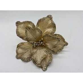 Poinsétia Dourada 25cm - FL553 ;ira dar um toque especial de sofisticação em sua decoração ou até mesmo em sua mesa posta, com detalhes singulares e sutis, espalhando charme e delicadeza por seu lar.