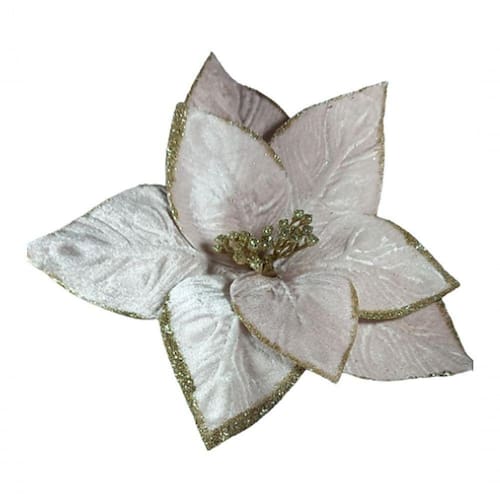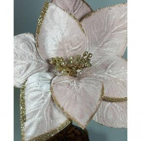 Poinsetia Rose De Veludo Com Brilho 28cm - FL2110 ;ira dar um toque especial de sofisticação em sua decoração ou até mesmo em sua mesa posta, com detalhes singulares e sutis, espalhando charme e delicadeza por seu lar.