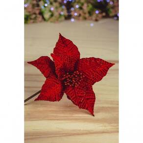 Poinsetia Vermelha Com Detalhes Nas Pétalas 22cm - FL354 ira dar um toque especial de sofisticação em sua decoração ou até mesmo em sua mesa posta, com detalhes singulares e sutis, espalhando charme e delicadeza por seu lar.