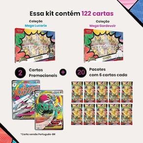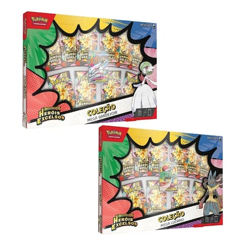 Chegou o grande lançamento de Março de 2026! Dê um upgrade definitivo na sua coleção com o exclusivo Kit Combo Box Coleção Mega EX - Heróis Excelsos. Este formato premium é a escolha perfeita para quem quer dominar o "meta" atual de uma só vez, garantindo as duas grandes estrelas da expansão e um conteúdo massivo de 20 pacotes de booster no total. O QUE VEM NA EMBALAGEM (O KIT CONTÉM 2 BOXES): Este combo é a experiência completa, contendo: 20 Pacotes de Booster da recém-lançada coleção Heróis Excelsos do Pokémon Estampas Ilustradas (10 pacotes em cada box). 1 Carta Holográfica Promocional Mega Lucario EX. 1 Carta Holográfica Promocional Mega Gardevoir EX. SOBRE O COMBO HERÓIS EXCELSOS (MEGA LUCARIO E MEGA GARDEVOIR): A coleção Heróis Excelsos marca uma nova era no Pokémon TCG com o retorno triunfal das Megaevoluções! Com este kit completo, você não precisa escolher: você garante tanto a aura de combate focada e implacável do Mega Lucario EX quanto o imenso poder psíquico e a elegância da Mega Gardevoir EX. É o conjunto essencial para jogadores e colecionadores que buscam as cartas mais raras e poderosas deste grande lançamento.