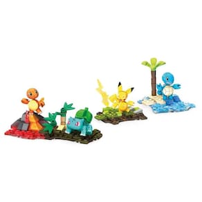 Liberte a força que existe desses 4 Pokémons montáveis, incluindo Pikachu, Squirtle, Charmander e Bulbassauro com os Blocos de Montar Pokemon Mega Construx Equipe de Kanto Mattel 130 Peças. Além de cenários ambientais montáveis que representam o tipo e o poder especial de cada personagem, os ambientes podem ser conectados em diversas combinações diferentes. Os brinquedos de montar são indicados para crianças a partir de 6 anos de idade.
