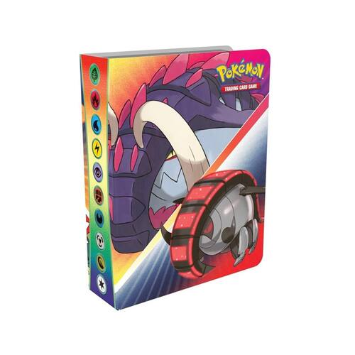 Guarde seus cartões com estilo! Você pode colocar até 60 dos seus melhores e mais recentes cartões Pokémon neste mini portfólio. Cada portfólio inclui um pacote booster Pokémon TCG, para que você possa começar a enchê-lo imediatamente! Um pacote booster Pokémon TCG contém 10 cartas de jogo, 1 Basic Energy ou 1 marcador VSTAR e uma carta de código para Pokémon TCG Live. As cartas variam de acordo com o pacote. Este prático mini portfólio apresenta uma imagem da Great Tusk e Iron Treads na capa frontal, enquanto a mariposa de ferro e a asa Slither adornam a parte traseira.