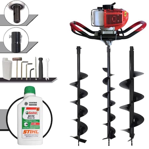 Perfurador De Solo Anmax GD520B Á Gasolina 2T 52CC 2,2HP Com Brocas 80x10cm, 80x15cm, 80x20cm + Óleo Castrol Stihl 2T 500ml