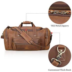 Couro 100 de couro de grão integral e zíperes de metal YKK Usamos couro americano autêntico que ganha personalidade à medida que envelhece e zíperes YKK premium para garantir qualidade e confiabilidade. Nossa Weekender Travel Duffel foi feita para enfrentar tudo o que você oferecer ao longo dos anos. Grande capacidade Dimensões 58 25 . Peso do item 2,7 kg. Fácil de transportar suas necessidades, ótimo para viagens de fim de semana, férias ou uma viagem de negócios. Bolsa de zenamento aprimorada Há um bolso frontal e dois bolsos laterais na bolsa, pode segurar perfeitamente uma garrafa de água e um guarda chuva para uso diário. Mantenha suas opções abertas Encontre a empunhadura certa para qualquer situação com nossas alças de transporte resistentes e alça de ombro destacável. Esteja você usando a com o corpo cruzado em uma motocicleta ou por cima do ombro com um terno, a alça com fivela ajustável torna nossa mochila de viagem Ambassador confortável para levar com você Marca: Não Informado