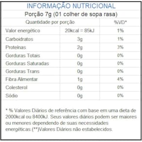 É um alimento muito rico em carotenos (vitamina A) e rutina (vitamina P) e é uma fonte preciosa de oligo-minerais, elementos químicos (titânio, níquel, cobalto, silício, etc) que o organismo humano necessita em pequenas quantidades e que não são encontrados na maioria dos produtos alimentícios.