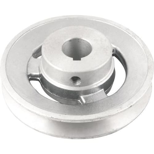 Ref. Fornecedor:6677019100conteúdo Embalagem:1 Polia de alumínioAplicações e dicas de uso:Utilizada para transmitir a potência dos motores para as máquinas e equipamentos por eles acionados.Características Técnicas:Diâmetro externo da polia: 100,0 mm Número de canais da polia: 1 canal Perfil do canal da polia: Canal - A Diâmetro do furo da polia: 19 mm Marca: Não Informado Ean: 7893946619206