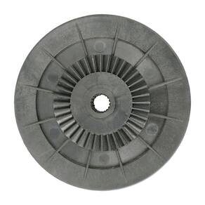 A polia da transmissão, junto da correia, é um equipamento de transmissão de energia mecânica, responsável por transferir a rotação do motor para o conjunto mecanismo da lavadora para realizar a agitação.