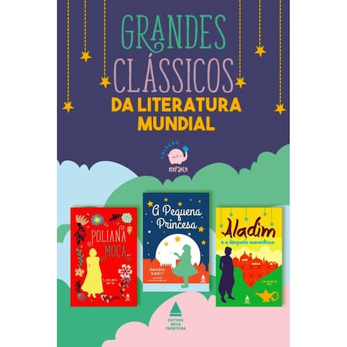 Poliana moça: Depois de transformar os moradores de Beldingsville, Poliana começa outra aventura: uma estadia na casa da triste Ruth, em Boston, enquanto sua tia Paulina acompanha o marido na Alemanha. Em seguida, a menina vai ao encontro da tia, retornando à pequena cidade apenas tempos depois, quando já conta com vinte anos. Eleanor H. Porter publica este terno romance em 1915, dois anos após o clássico que se tornou sinônimo de otimismo e doçura. Aqui acompanhamos o processo de amadurecimento de Poliana e, como não poderia deixar de ser, o esperado momento da descoberta do amor. Esta edição conta com um projeto gráfico especial, todo ilustrado e com capa acolchoada. Ao contrário da bem-nascida Sara, protagonista desta história, Frances Hodgson Burnett (1849-1924) passou um longo período de dificuldade financeira até estabelecer-se como escritora e dramaturga, tendo escrito outros livros, como O pequeno lorde e O jardim secreto. A pequena princesa: Nesta versão do clássico de 1905, Sara vai da riqueza, exibida em vestidos e brinquedos, à desgraça, após a falência e o falecimento do pai. Órfã, essa doce, altiva e inteligente menina passa a morar no sótão e a sofrer a humilhação de Miss Minchin, sempre severa e odiosa. Mas o destino ainda lhe reserva outra reviravolta, com direito a elementos inesperados para esta história deliciosa e cativante. Aladim: Aladim é um jovem preguiçoso, que vive a vagar pelas ruas e não se preocupa em ajudar os pais no trabalho ou em casa. Certo dia descobre, através de um mágico, a existência de uma lâmpada maravilhosa, que guarda um gênio capaz de realizar os desejos mais extraordinários. Encontrar essa lâmpada transforma completamente a modesta vida de Aladim, mas é quando vê a filha do sultão que ele se lança em uma aventura fabulosa, tudo para se casar com a mulher de seus sonhos. Uma das mais conhecidas histórias de As mil e uma noites é contada aqui com primor pelo jornalista e escritor Carlos Heitor Cony.