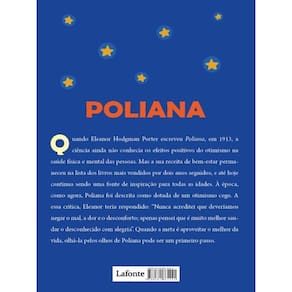 Quando Eleanor Hodgman Porter escreveu Poliana, em 1913, a ciência ainda não conhecia os efeitos positivos do otimismo na saúde física e mental das pessoas. Mas a sua receita de bem - estar permaneceu na lista dos livros mais vendidos por dois anos seguidos, e até hoje continua sendo uma fonte de inspiração para todas as idades. A época, como agora, Poliana foi descrita como dotada de um otimismo cego. A essa crítica, Eleanor teria respondido: ¨Nunca acreditei que deveríamos negar o mal, a dor e o desconforto; apenas pensei que é muito melhor saudar o desconhecido com alegria¨. Quando a meta é aproveitar o melhor da vida, olhá-la pelos olhos de Poliana pode ser um primeiro passo. Ean: 9788581862941