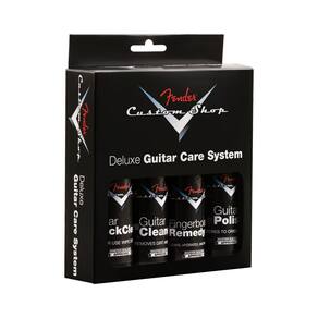 O Fender® Custom Shop Deluxe Guitar Care System é um pacote prático que contém um frasco de cada produto Fender Custom Shop Guitar Care: Cleaner, Polish, Quick Clean e Fingerboard Remedy.