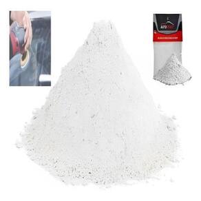 Misturar com agua ou agente de polimento até formar uma pasta, após isso aplicar no local desejado e com a politriz ou com almofada de polimento polir até o ponto desejado.