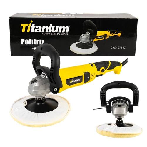 Produto: Politriz angular 7" 1.200W velocidade variável - 07646 Marca: Titanium Voltagem: 110VDescrição: A Politriz angular 7" 1.200W velocidade variável da Titanium é a ferramenta perfeita para preparação, lixamento e polimento em resinas, fibra de vidro, ceras, polimentos, pinturas e superfícies metálicas. Possui punho em "D" que facilita o manuseio durante o trabalho, alta potência de 1200 watts que garante força e agilidade. Velocidade variável entre 500 a 3800 rotações por minuto. Além disso a Politriz Angular prato de apoio, boina de polimento, maleta e punho auxiliar. Características: • Removo ferrugem e graduação de aço; • Encera diferentes superfícies; • Empunhadura em D facilita o manuseio da máquina; • Velocidade variável, melhor acabamento nos trabalhos que requerem um controle sensível do equipamento; • Botão de uso contínuo, permite a utilização da politriz de maneira contínua sem a necessidade de pressionar o gatilho.Especificações: Potência: 1200WVelocidade: 800-3500 RPMDiâmetro: 180mmCabo de 2m.Itens Inclusos: Disco velcrado 7"Boina de polimentoPunho auxiliar tipo "D". Marca: Não Informado Ean: 7908200011112