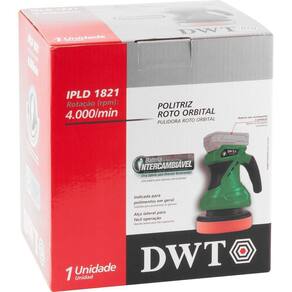 Este equipamento utiliza um modelo de bateria que pode ser intercambiável (não acompanha), ou seja, uma bateria que é compatível com outros modelos de ferramentas a bateria DWT. Por isso, em sua próxima compra de ferramenta a bateria DWT, procure um modelo que comece com a referência ?I?, ou que esteja identificado com o selo ?Bateria Intercambiável DWT?. Desta forma, você garante modelos mais econômicos, sem a necessidade de aquisição de novas baterias e carregadores para uso em seu equipamento. Possui base com sistema fixa fácil e cabo com revestimento emborrachado, proporcionando maior conforto ao operador.