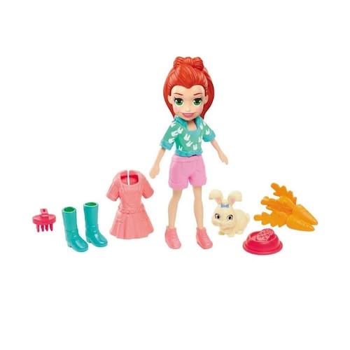 Polly Lila com Bichinho - Mattel É hora de brincar com a boneca Lila® e sua adorável coelhinha, Bonita! A boneca Lila® pode levar sua coelhinha na caixinha de transporte e deixá-la sair para brincar assim que chegar ao seu destino! Se sua coelhinha ficar com fome ou sede, Lila® poderá dar-lhe cenouras e água também! São mais de sete acessórios diferentes para brincar e se divertir!