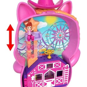 Abra o estojo do pônei para explorar todas as aventuras do carnaval de rodeio. Deixe as crianças mergulharem no mundo encantador do Polly Pocket, onde a diversão nunca tem fim. Aproveite para estimular a imaginação e a criatividade dos pequenos!