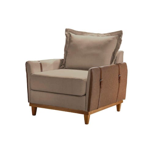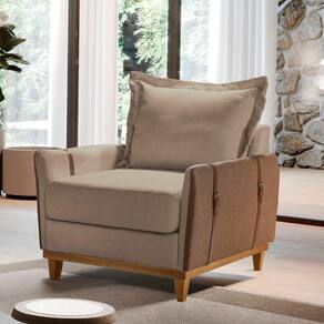 Poltrona 1 Lugar Dubai Couro e Linho - Bege Médio