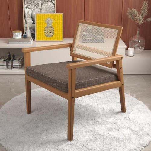 A poltrona Caraíva é o móvel ideal para quem procura design e estilo com conforto e funcionalidade. É perfeita para incrementar a decoração de diversos espaços, como sala de estar, quarto, home office e cantinho dedicado à leitura. Acompanha Almofadas extras: Não Acompanha Puff: Não Almofada do assento: Fixa Almofada do encosto: Não Possui Altura do assento até o chão: 45 Altura do Encosto: 78,5 cm Ambiente Principal: Sala de Estar Complexidade da Montagem: Baixa: pode ser montado por uma pessoa sozinha Cor: Marrom Cor do Produto: Marrom Design Assinado: Não Enchimento do Assento: Espuma D-23 Enchimento do Braço: Não Possui Encosto para a Cabeça: Não Estampado: Não Extensível: Não Firmeza do Assento: Macio Itens Inclusos: 1 Poltrona e manual de instrução Manual de Montagem e Instalação: https://product-hub-prd.madeiramadeira.com.br/859295/documents/b331514f-1ad8-4201-a3a7-392f210859981403821poltronacaraIva.pdf Material do Braço: madeira Material dos Pés: Pinus Modelo de Poltrona: Fixo Necessita Montagem: Sim Origem do Produto: Nacional Peso: 10 Possui Percintas Elásticas: Não Possui Pés: 04 Possui Rodízio: Não Recomendações de Uso, Manutenção e Limpeza: Assento/encosto: use aspirador de pó para eliminar a poeira. Caso seja necessário, passe um pano umedecido em água e sabão neutro e aplique em movimentos suaves a favor do fio do tecido. Enxugue com um pano limpo e seco. Se precisar lavar, faça somente lavagem a seco e leve até uma empresa especializada. Estrutura de madeira: use um pano umedecido com água. Enxugue em seguida com um pano limpo e seco. Cuidados: não use produtos químicos ou abrasivos. A poltrona Air deve ser utilizada em ambientes internos para que não seja exposta a agentes marromis (chuva, sol e umidade). Resistente à Chuva: Não Sistema de Montagem: Parafusos Suporta Até (kg): 100 Tecido Predominante: Linho Tipo de Assento: Fixo Tipo de Encosto: Fixo Tipo de Espuma do Assento: Espuma Convencional Tipo de Poltrona: Decorativa Ean: 7909903355428