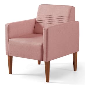 Poltrona Aila Linho Rosa E Pés Em Madeira