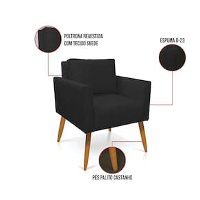 Que tal adicionar um pouco de cor ao seu ambiente? Temos essa linda Poltrona Aline no tom Preto, ela é um item indispensável na elaboração de uma boa decoração. Perfeita para relaxar, não importa onde for colocada, fica linda no hall de entrada, em volta de uma mesinha de centro na sala de estar, como apoio no quarto ou acomodação extra em escritório. Sem dúvida, ela irá transformar seu espaço em um lugar super harmonioso e moderno. Sua estrutura é confeccionada em madeira de eucalipto proveniente de reflorestamento, o estofamento do assento/encosto é composto de espuma prorelax D-23, revestido em Suede, um tecido aconchegante, resistente e extremamente luxuoso. Sua sustentação é dada pelos tradicionais pés palito castanho. E para complementar ainda mais esta peça, contém uma almofada do mesmo tom do tecido da poltrona, agregando um toque charmoso e lindo à mobília. Curtiu a nossa poltrona? Aqui você encontra uma variedade de cores, para renovar seu cômodo gastando pouco. Garanta já sua Poltrona Aline!