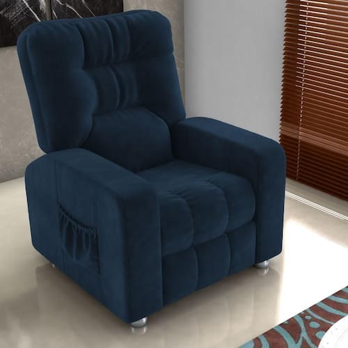 QUANTIDADES DE CAIXAS DE EMBALAGEM: 1 | PESO DO PRODUTO (KG): 40 | PESO PRODUTO COM EMBALAGEM (KG): 40 | É GIRATÓRIA: Não | CÔMODO INDICADO: Sala | DESCRIÇÃO DO TAMANHO: 105x85x85 cm | CORES DO PRODUTO (FILTRO DE CORES): Azul | COMPRIMENTO DO PRODUTO (CM): 85 | TIPO DE CADEIRA: Poltrona | COM RODAS: Não | COR PREDOMINANTE: Azul | COMPRIMENTO PRODUTO COM EMBALAGEM (CM): 84 | LARGURA DO PRODUTO (CM): 82 | PRODUTO: Poltrona | NOME DO PRODUTO NO FORNECEDOR: Poltrona Eletrica | LARGURA PRODUTO COM EMBALAGEM (CM): 84 | MATERIAL PARA FILTRO: Veludo | ALTURA DO PRODUTO (CM): 105 | INSTRUÇÕES/CUIDADOS: Limpar com pano macio e seco, não utilizar produtos abrasivos | CONTEÚDO DA EMBALAGEM: 1 Poltrona | PESO MÁXIMO SUPORTADO: 110 | MARCA: CasaH | ESTADO DE ORIGEM: PR | COM ENCOSTO RECLINÁVEL: Sim | PRODUTO PRECISA DE MONTAGEM?: Sugerimos a contratação de um montador para a montagem do produto. Não nos responsabilizamos por causadas no ato da montagem. | COM APOIO DE BRAÇOS: Sim | COM ALTURA AJUSTÁVEL: Sim | MATERIAL PRINCIPAL: Veludo | ALTURA DO PRODUTO COM EMBALAGEM (CM): 77