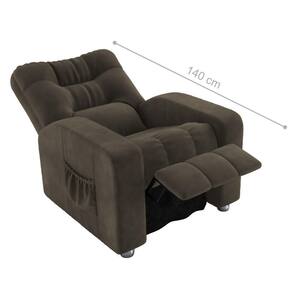 PESO PRODUTO COM EMBALAGEM (KG): 40 | CORES DO PRODUTO (FILTRO DE CORES): Marrom | MARCA: CasaH | MATERIAL PRINCIPAL: Veludo | CONTEÚDO DA EMBALAGEM: 1 Poltrona | NOME DO PRODUTO NO FORNECEDOR: Poltrona Eletrica | PRODUTO PRECISA DE MONTAGEM?: Sugerimos a contratação de um montador para a montagem do produto. Não nos responsabilizamos por causadas no ato da montagem. | ALTURA DO PRODUTO (CM): 105 | PESO DO PRODUTO (KG): 40 | DESCRIÇÃO DO TAMANHO: 105x85x85 cm | LARGURA PRODUTO COM EMBALAGEM (CM): 84 | INSTRUÇÕES/CUIDADOS: Limpar com pano macio e seco, não utilizar produtos abrasivos | COM ALTURA AJUSTÁVEL: Sim | MATERIAL PARA FILTRO: Veludo | É GIRATÓRIA: Não | COMPRIMENTO DO PRODUTO (CM): 85 | COM APOIO DE BRAÇOS: Sim | TIPO DE CADEIRA: Poltrona | LARGURA DO PRODUTO (CM): 82 | COM RODAS: Não | COR PREDOMINANTE: Marrom | COMPRIMENTO PRODUTO COM EMBALAGEM (CM): 84 | ALTURA DO PRODUTO COM EMBALAGEM (CM): 77 | ESTADO DE ORIGEM: PR | QUANTIDADES DE CAIXAS DE EMBALAGEM: 1 | COM ENCOSTO RECLINÁVEL: Sim | PRODUTO: Poltrona | CÔMODO INDICADO: Sala | PESO MÁXIMO SUPORTADO: 110