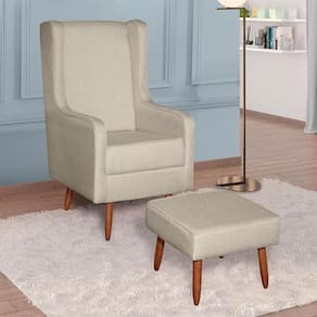 Poltrona Amamentação Aquila com Puff Linho Bege Pés Palito - Fratello
