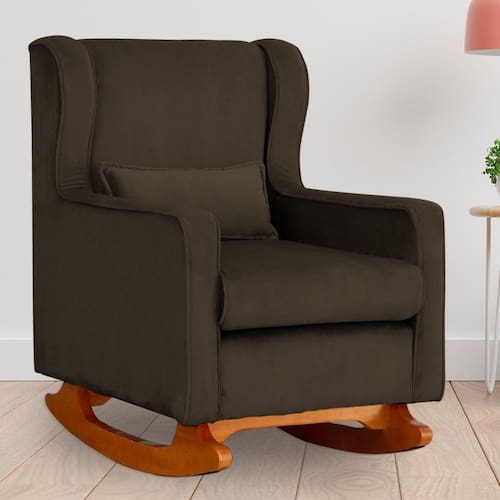 Poltrona Amamentação Balanço Aurora Veludo Marrom - LM DECOR