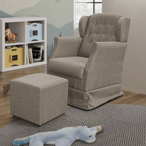 Poltrona Amamentação Balanço Descanso Manu Com Puff Linho - Marrom
