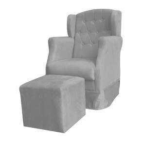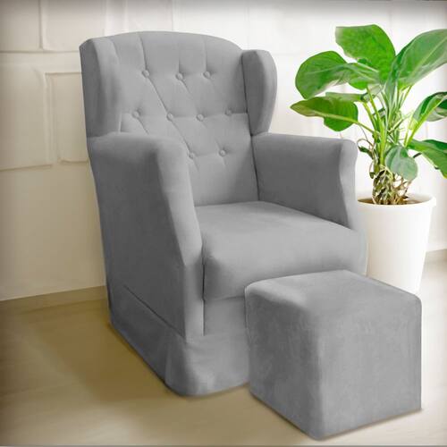 Poltrona Amamentação Balanço Descanso Manu Com Puff Suede - Cinza
