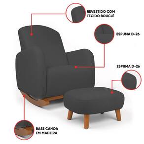 Prepare-se para viver momentos únicos de aconchego e conexão com o seu bebê. A Poltrona de Amamentação Jhessy em Bouclê foi criada para ser o seu verdadeiro refúgio de tranquilidade. Com design moderno e linhas orgânicas, ela se integra com elegância a qualquer ambiente. O estofamento em espuma de alta densidade D-26, aliado ao encosto alto e apoios laterais, oferece o suporte ideal para uma amamentação confortável e segura. Sua estrutura em madeira de eucalipto reflorestado garante resistência e longa durabilidade, suportando até 120 kg com total confiança. Um diferencial encantador é o sistema de balanço tipo canoa em madeira, que proporciona um movimento suave e contínuo, perfeito para acalmar mãe e bebê. Para completar a experiência, o puff com pés palito garante descanso extra para pernas e pés, ampliando o bem-estar nos momentos mais especiais da maternidade.
