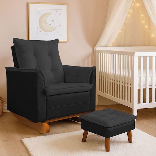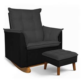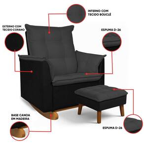 Poltrona Amamentação Balanço Madeira e Puff Lariane Nozes/Bouclê R04 - D`Rossi - Preto