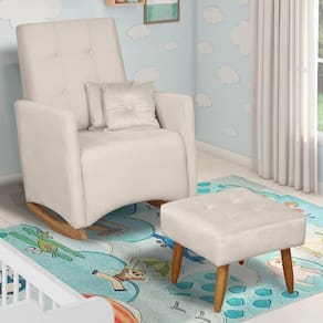 Com estrutura em madeira de eucalipto, oferece resistência e durabilidade no uso diário. A espuma D-23 combinada com o tecido veludo da Poltrona proporciona um toque macio e agradável, excelente para longas períodos de amamentação. Seus pés de madeira contam com suporte estável e acabamento sofisticado, enquanto o mecanismo de balanço suaviza os movimentos, sendo perfeito para ninar o neném, promovendo relaxamento e bem-estar. O assento e o encosto são sustentados por percintas elásticas, garantindo firmeza e apoio adequados. O Puff incluso é ótimo para descansar os pés e aumentar ainda mais o conforto. Perfeita para quem busca praticidade e estilo, essa Poltrona de Amamentação se adapta facilmente a qualquer ambiente, seja no Quarto de bebê, na Sala de Estar ou em outros espaços, trazendo elegância e aconchego.
