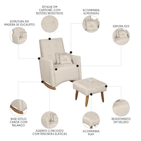 ProductContents: 1 Poltrona, 1 Puff | da peça: 1 | Profundidade: 83,0 cm | OriginState: PR | ColorSimple: Off White | ColorFamily: Off White | Color: Off White | OriginCountry: | Peso: 18 kg | Tipo de Garantia: Fabricante | Peso Suportado: kg | Manual: Sim | ProductHeight: 98 | ProductWarranty: 90 dias após o do produto | Origem: | ColorSupplier: Off White | Cor: Off White | Gênero: Unisex | SupplierSimpleName: Poltrona Amamentação Base Balanço e Puff Lola Veludo Off F03 - Mpozenato | Material: Madeira de Eucalipto | Requere montagem: Sim | MaterialFamily: Veludo | Largura: 68,0 cm | Altura: 98,0 cm | ProductLength: 83 | ProductWidth: 68 | Model: Lola | SizeDescription: 98 x 68 x 83 cm | Quantidade de Itens: 1 | Fabricante: Mpozenato | Marca: Mpozenato | ProductWeight: 18 | AssemblyRequired: Sim, sugerimos a contratação do nosso de montagem (para os CEPs em que o está dispon | É Fragil?: Não | Componentes: 1 Poltrona