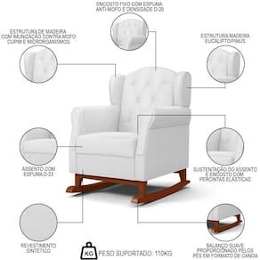 A Poltrona Amamentação Base Madeira Balanço e Puff Lucy P04 Sintético Branco Mpozenato é a escolha ideal para as mamães que buscam conforto, beleza e qualidade. Ela possui uma estrutura de madeira de reflorestamento com imunização contra mofo, cupim e microrganismos, garantindo maior durabilidade e resistência. Além disso, vem com um puff para apoiar os pés e relaxar. A sustentação do assento e encosto é feita com percintas elásticas que proporcionam mais maciez e ergonomia. O Tecido Sintético é fácil de limpar e tem um toque suave na pele. A base canoa com balanço permite um movimento suave e relaxante, ideal para ninar o bebê ou descansar após um dia cansativo. A poltrona tem um design moderno e elegante que combina com qualquer ambiente. Ela está disponível em para você escolher a que mais combina com o seu estilo. Não perca essa oportunidade de ter uma Poltrona de Amamentação e Descanso na sua casa. Você vai se surpreender com o conforto e a qualidade dessa poltrona. Compre já!