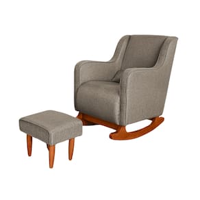 Poltrona Amamentação C / Balanço Cadeira Descanso Aquila Com Puff Linho - Marrom