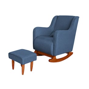 Poltrona Amamentação C / Balanço Cadeira Descanso Aquila Com Puff Linho - Azul