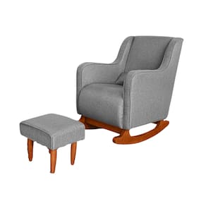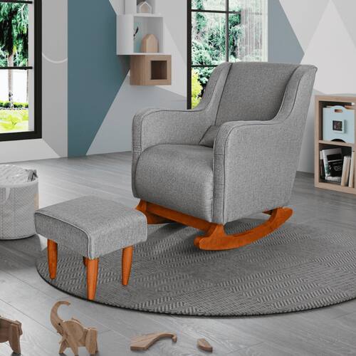 Poltrona Amamentação C / Balanço Cadeira Descanso Aquila Com Puff Linho - Cinza