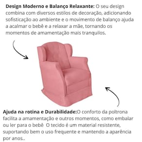 Poltrona Amamentação Cadeira Reforçada Balanço Lile Suede Cor:rosê