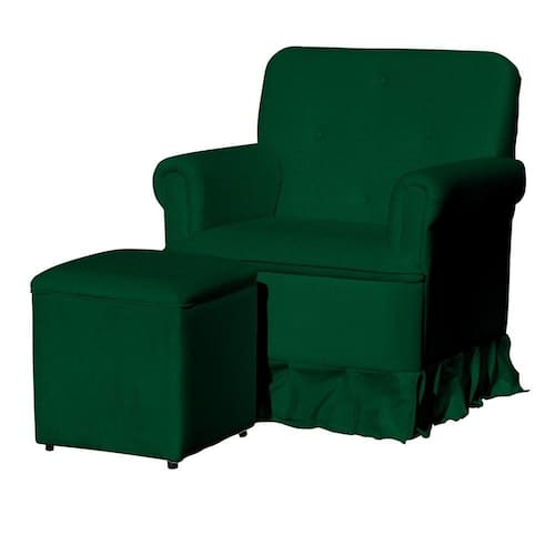 Poltrona Amamentação Com Puff Laura Suede Verde - LM DECOR