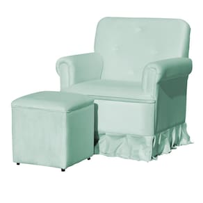Poltrona Amamentação Com Puff Laura Veludo Acqua - LM DECOR - Verde Claro