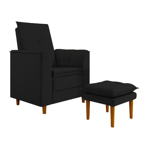 Poltrona Amamentação Confortável Com Puff Ivy Suede - Preto