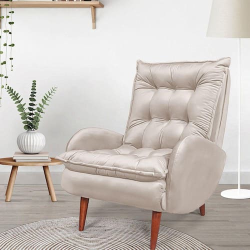 A Poltrona Anatômica Eloá é robusta, elegante e muito confortável, excelente opção para transformar a decoração de seu lar ou escritório, pode ser utilizada em vários cômodos e ser aproveitada para leitura, amamentação e descanso. Ela tem um design diferenciado, foi projetada com objetivo de se moldar ao corpo, proporcionando muito conforto e elegância. Ela é feita com espuma certificada e persinta de alta resistência, apresenta muita qualidade, segurança e excelente acabamento. Outro diferencial é o Pilow com fibra siliconada, garantindo um acabamento com grande maciez. Sua estrutura é composta por madeira de eucalipto e pés de madeira em pínus. A Poltrona Eloá é uma ótima aquisição que deixará seu ambiente com uma aparência ainda mais respeitável, além de garantir maior conforto. Produto Montado: Sim Acompanha Almofadas extras: Não Acompanha Puff: Não Almofada do assento: Fixa Almofada do encosto: Fixa Altura do assento até o chão: 49.0000 Altura do Encosto: 61 cm Altura dos Pés: 25 cm Ambiente Principal: Sala de Estar codigo_ean: 7908439661027 Complexidade da Montagem: Baixa: pode ser montado por uma pessoa sozinha Cor: Bege Cor do Produto: Bege Design Assinado: Não Enchimento do Assento: Fibra Siliconada Enchimento do Braço: Espuma D-28 Enchimento do Encosto: Fibra Siliconada Encosto para a Cabeça: Não Estampado: Não Extensível: Não Firmeza do Assento: Macio Informações Complementares: Produto de excelente qualidade, design diferenciado e super confortável Itens Inclusos: 1 Cadeira e 4 pés Manual de Montagem e Instalação: https://product-hub-prd.madeiramadeira.com.br/662684/documents/50b85521-c894-40bf-b0c4-4296755bf61dbb48761320elofolhamontagem.pdf Material dos Pés: Madeira Modelo de Poltrona: Fixo Necessita Montagem: Sim Origem do Produto: Nacional Peso: 25,2 kg Possui Percintas Elásticas: Sim Possui Pés: 04 Possui Rodízio: Não Recomendações de Uso, Manutenção e Limpeza: Cuidados: Não expor ao sol ou fonte de calor, pois está sujeito ao ressecamento e alteração da coloração do revestimento; -Não utilizar produtos de limpeza como detergente, álcool, solventes ou produtos químicos: Para a limpeza, utilizar pano umedecido em água, sabão neutro e escova de cerdas macias. Secar à sombra. Em caso de excesso de poeira, usar aspirador de pó; - Não sentar nos braços do sofá; - Não provocar tensões desproporcionais no assento do sofá, através de quedas ou pulos; - Evitar contatos com animais; - Preservar o produto de objetos aquecidos ou pontiagudos; - Mantê-lo em local arejado; - Transportar com o máximo de cautela. Sistema de Montagem: Rosquear os pés na poltrona Suporta Até (kg): 120 kg Tecido Predominante: Veludo Tipo de Assento: Fixo Tipo de Encosto: Fixo Tipo de Espuma do Assento: Fibra Siliconada Tipo de Espuma do Encosto: Fibra Siliconada Tipo de Poltrona: Decorativa Ean: 7908439661027