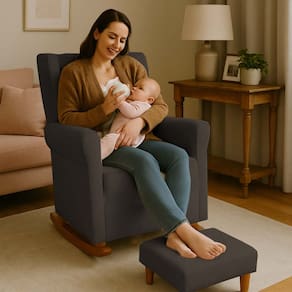 Poltrona para Amamentação em Suede Balanço e Puff Baby