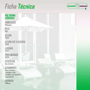 A Poltronas Cordova e a escolha ideal para quem busca conforto, durabilidade e elegancia em ambientes diversos. Com estrutura em aco carbono e acabamento em fibra sintetica. Seu encosto e assento estofado com tecido impermeavel proporciona conforto e praticidade, tornando o uso ainda mais agradavel. Produzidas de forma artesanal, combinam sofisticacao e exclusividade no design.