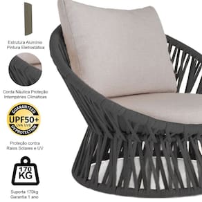 OBS: MANTENHA OS SEUS DADOS CADASTRAIS ATUALIZADOS, COMO ENDEREÇO E TELEFONE PARA CONTATO! Descubra a Elegância e Durabilidade da Poltrona Monza. Imagine-se desfrutando de um conforto inigualável com a Poltrona Monza. Feita em alumínio com uma sofisticada micro pintura, esta Poltrona Monza é a combinação perfeita de estilo e resistência. A corda náutica adiciona um toque de rusticidade moderna, enquanto o estofado impermeável garante que sua poltrona esteja sempre impecável, mesmo após uma chuva inesperada ou um acidente com líquidos.