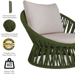 OBS: MANTENHA OS SEUS DADOS CADASTRAIS ATUALIZADOS, COMO ENDEREÇO E TELEFONE PARA CONTATO! Descubra a Elegância e Durabilidade da Poltrona Monza. Imagine-se desfrutando de um conforto inigualável com a Poltrona Monza. Feita em alumínio com uma sofisticada micro pintura, esta Poltrona Monza é a combinação perfeita de estilo e resistência. A corda náutica adiciona um toque de rusticidade moderna, enquanto o estofado impermeável garante que sua poltrona esteja sempre impecável, mesmo após uma chuva inesperada ou um acidente com líquidos.