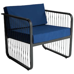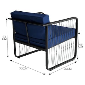 Poltrona área Externa Santiago Alumínio E Fibra Sintética Preto/azul A Poltrona Santiago para Area Externa e a escolha ideal para quem busca conforto, durabilidade e elegancia em ambientes ao ar livre. Com estrutura em aluminio e acabamento em fibra sintetica. Seu encosto e assento estofado com tecido impermeavel proporciona conforto e praticidade, tornando o uso ainda mais agradavel. Produzidas de forma artesanal, combinam sofisticacao e exclusividade no design. Ideais para areas gourmet, areas externas, churrasqueiras, ediculas e outros espacos que exigem um toque especial de charme e aconchego.